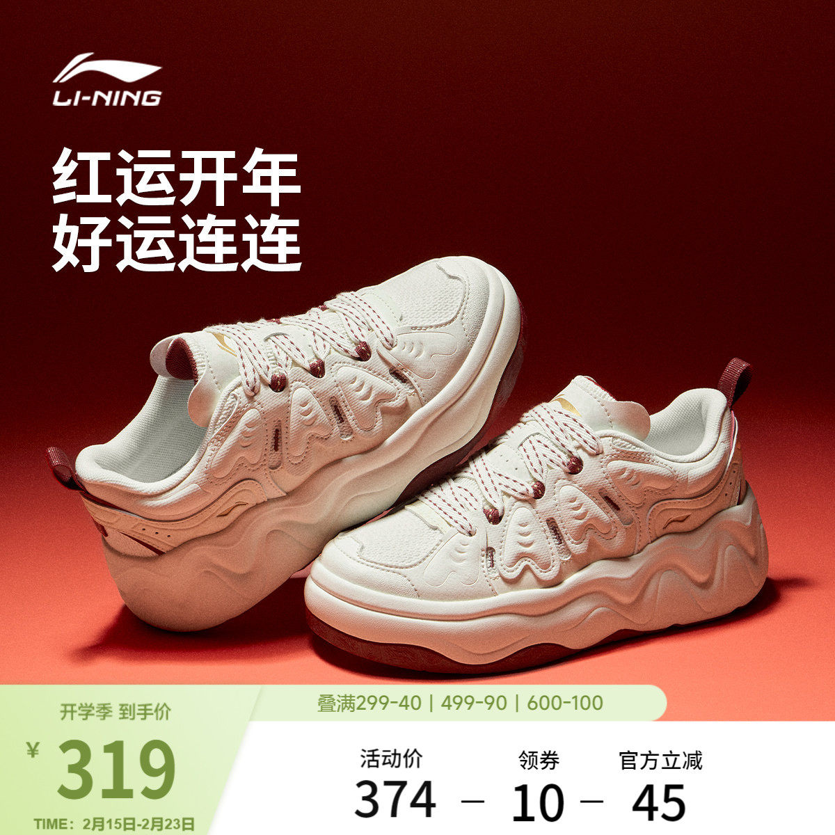 Li Ning Cheese 3丨Casual shoes women's spring thick soles increase the height of red New Year's bread shoes sneakers and board shoes