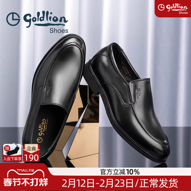 Goldlion men's shoes official genuine spring new dad business leather shoes men's one-foot leather loafer shoes