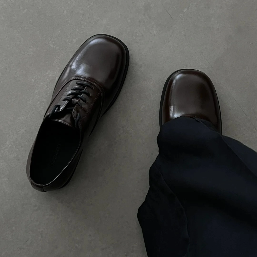 cleanfit leather shoes niche high-end square toe casual men's wedding commuting versatile round toe platform derby shoes