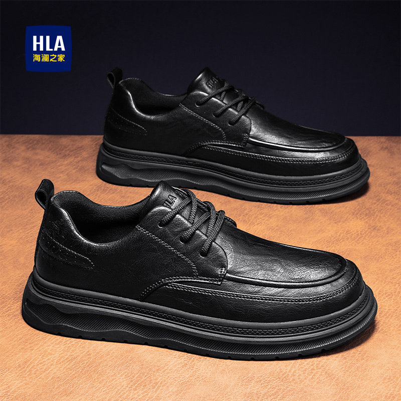 Heilan House men's shoes, spring and autumn leather casual leather shoes, black soft-soled official shoes, men's British low-top dad shoes