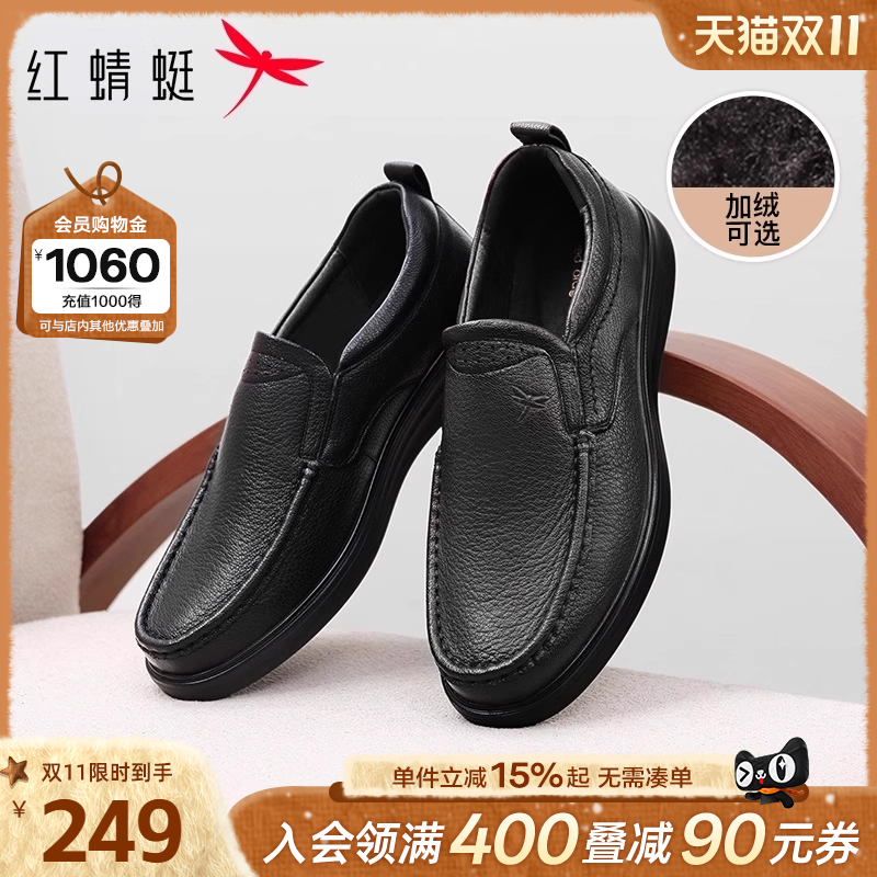 Aokang men's shoes, spring and autumn business casual leather shoes, leather soft face overslip feet plus fleece to increase height, commuting comfort dad shoes