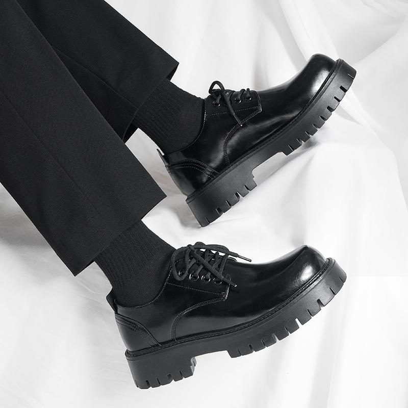 Paris platform derby shoes men's high-end niche cleanfit black height-boosted leather shoes British dress shoes