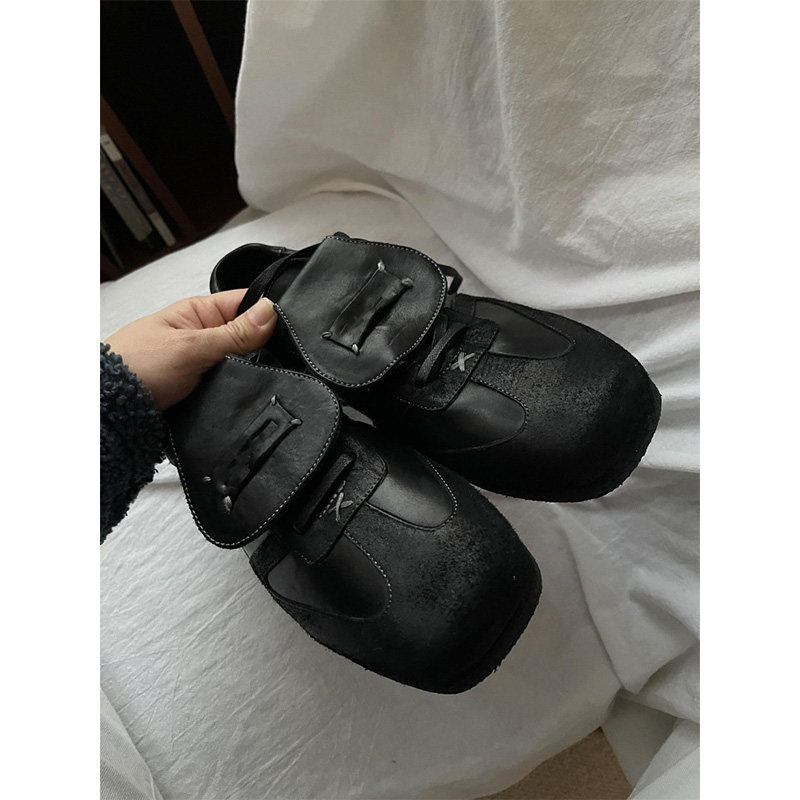 Simple flap boxing shoes, men's black minimalist German training shoes, women's British square-toed ballet shoes, casual derby leather shoes