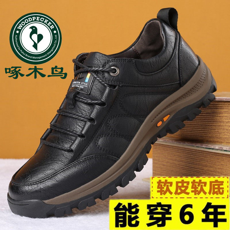 Woodpecker men's shoes, outdoor sports and leisure hiking shoes, winter fleece high-top cotton shoes, leather dad leather shoes, men's models
