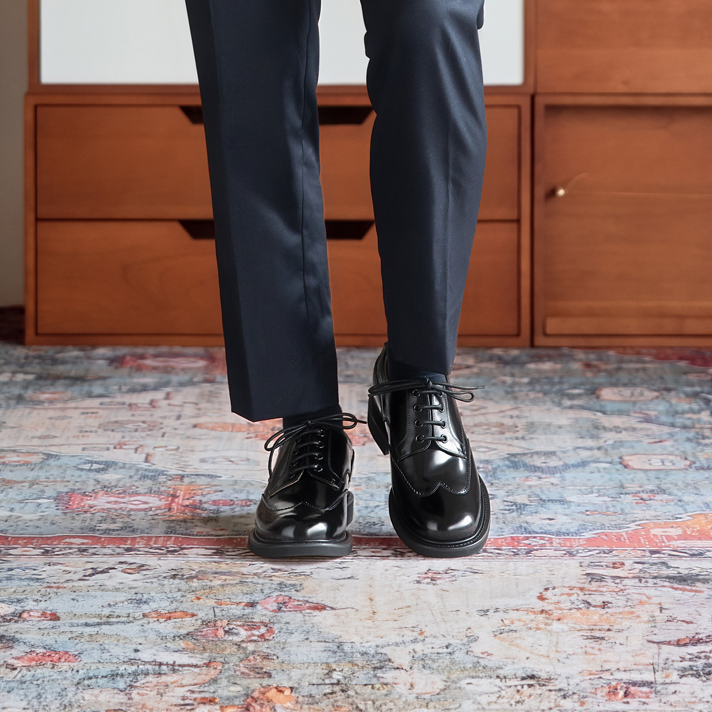 [Height increase approx. 5.5cm] ThomWills men's leather leather business dress handmade derby shoes winter