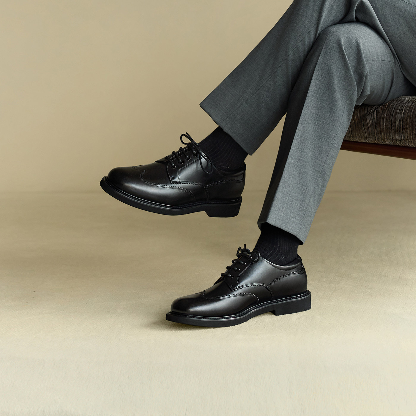 ThomWills Heightened Derby Shoes Men's Genuine Leather New Platform Business Casual Formal Leather Shoes Round Toe Winter
