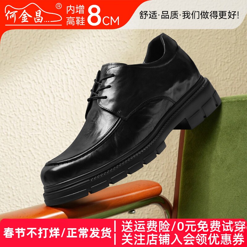 He Jinchang invisible inner heightening leather shoes men's shoes 8CM business formal wedding groom heightening shoes men's business casual