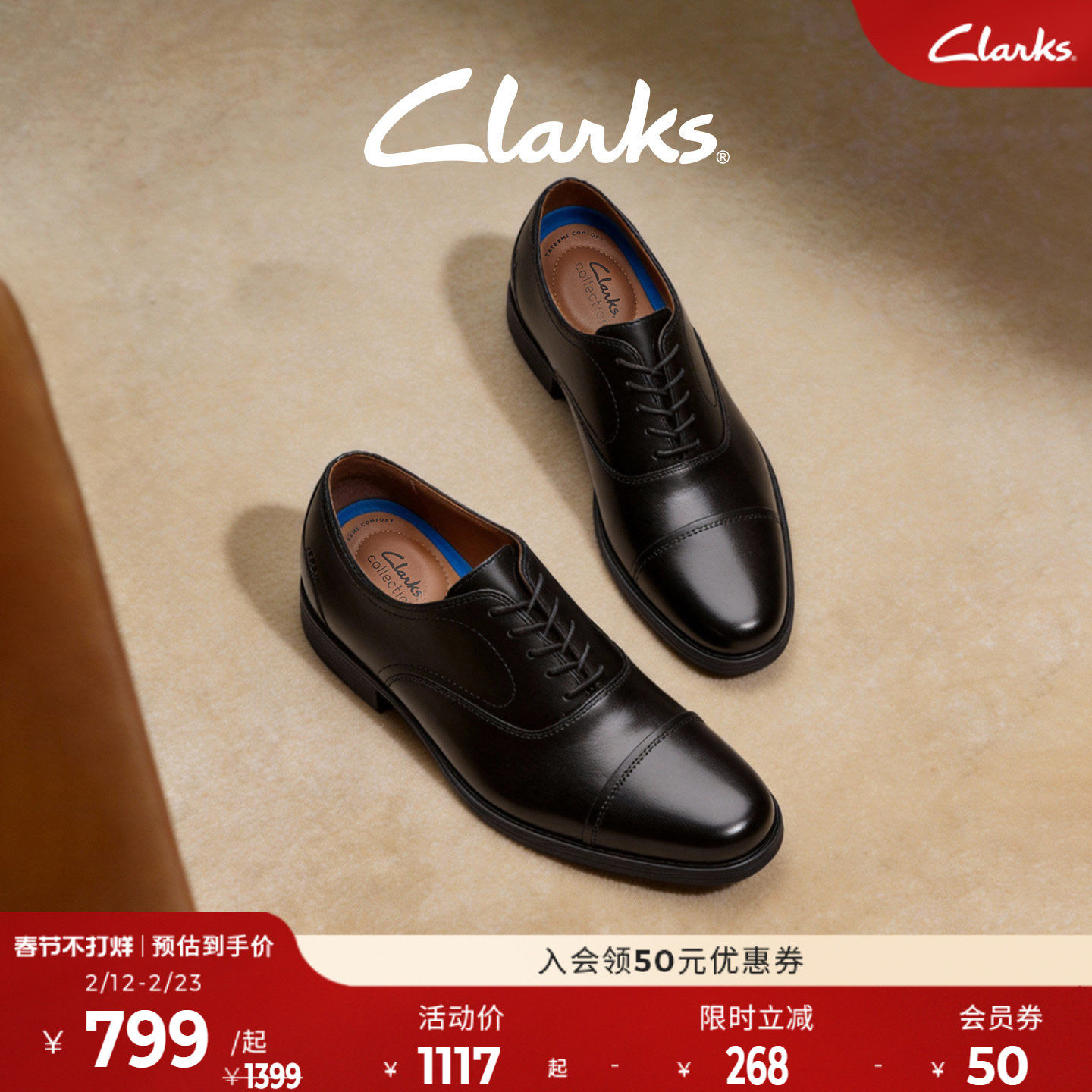 Clarks Tilden series business formal leather shoes men's autumn formal casual light and breathable wedding shoes