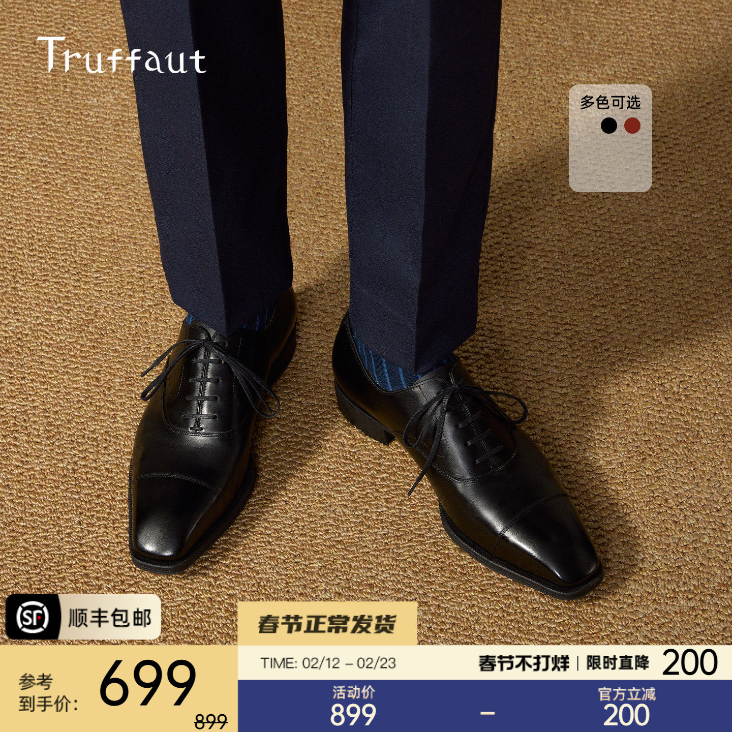 Truffaut sole men's leather shoes wedding business formal wear oxford shoes genuine leather British groom wedding shoes