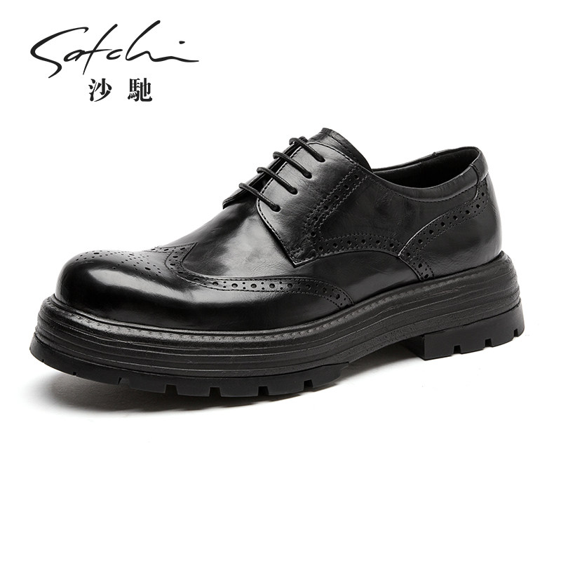 Shachi men's shoes 2026 spring fashion business formal wear brogue leather shoes men's British style thick sole heightened derby shoes