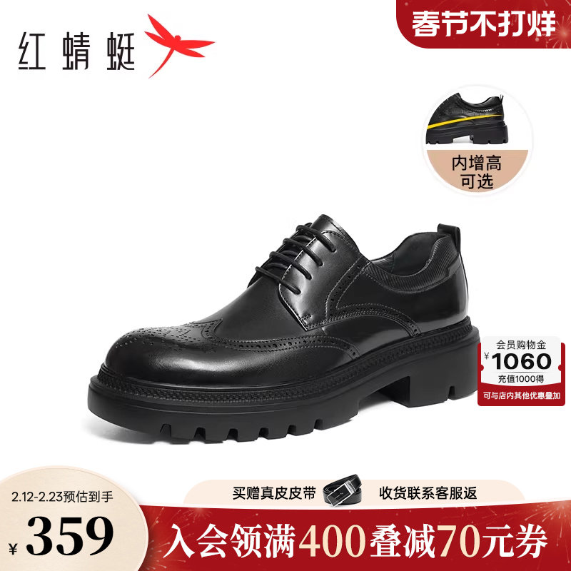Red dragonfly men's leather shoes, new men's shoes, platform derby shoes, inner heightened formal leather shoes, big toe wedding groom shoes