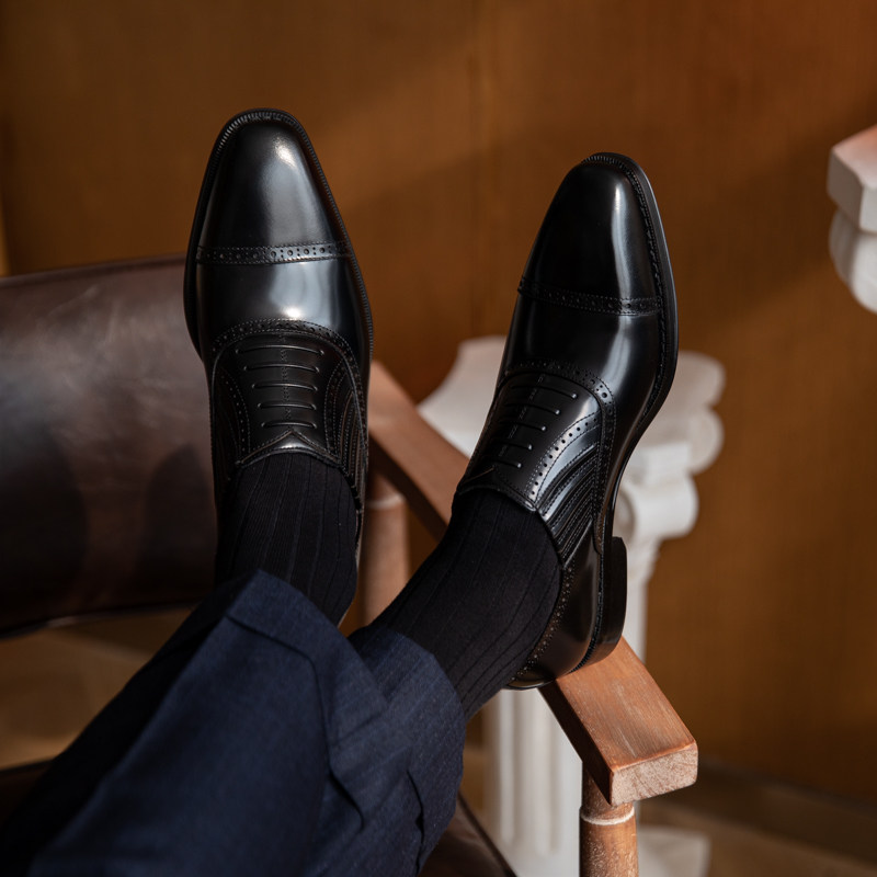 Mr. Lu San, British men, one foot slip brogue, three-section scalp shoes, business gentlemen, cowhide commuter dress shoes