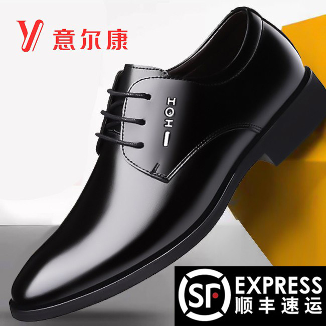 Yierkang men's shoes genuine leather men's winter and autumn business formal leather shoes men's fleece groom wedding soft sole comfortable
