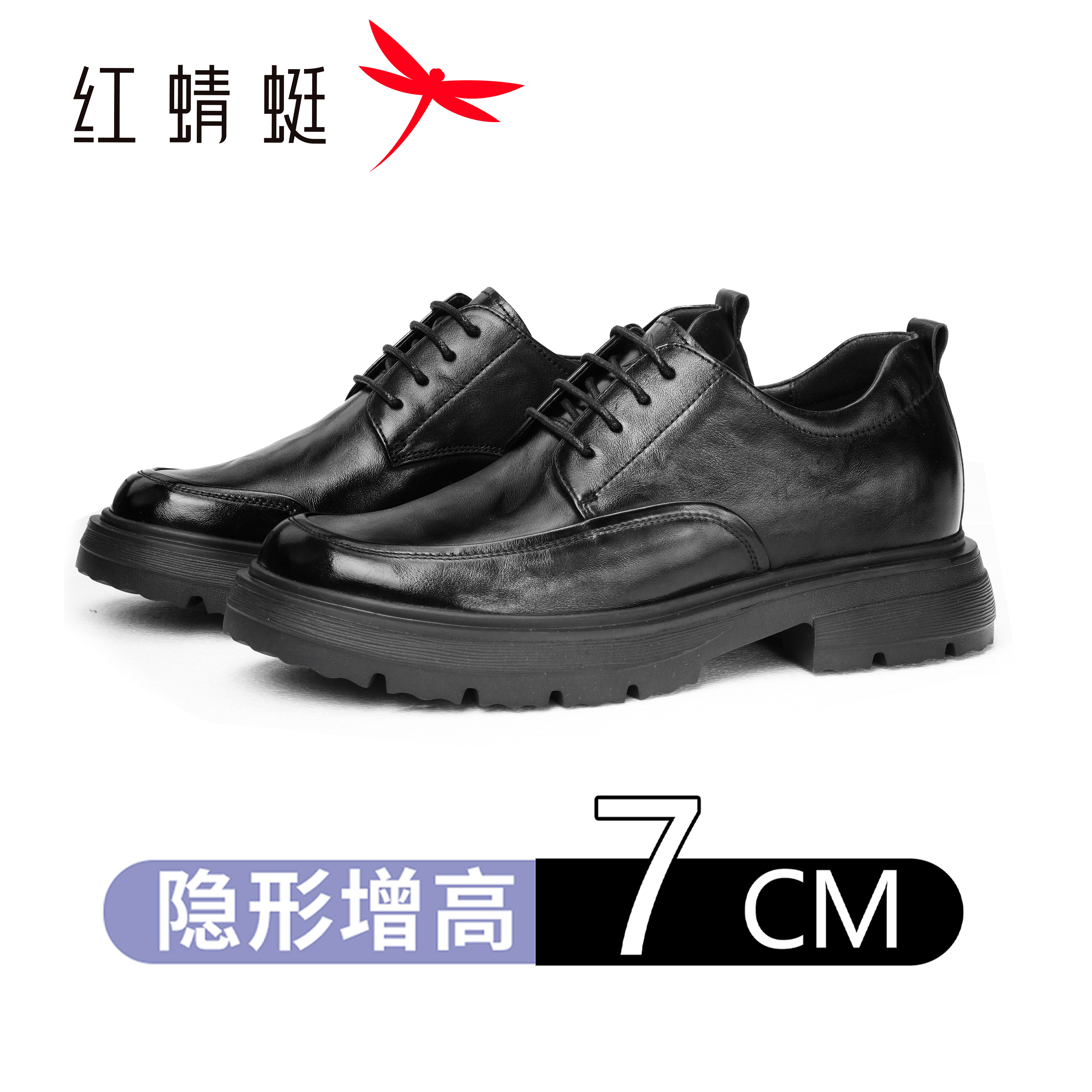 Red Dragonfly Men's Shoes [Increase by 7 cm] Leather Shoes Men's Korean Version Business Formal Leather Wedding Shoes Height Increase Shoes