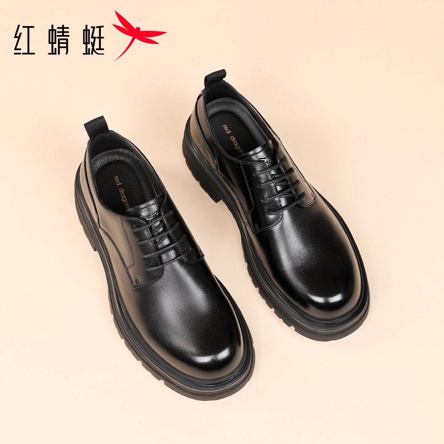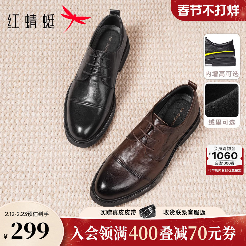 Red dragonfly men's shoes autumn and winter new shoes men's thick soles increase in height casual big scalp shoes men's business leather cowhide
