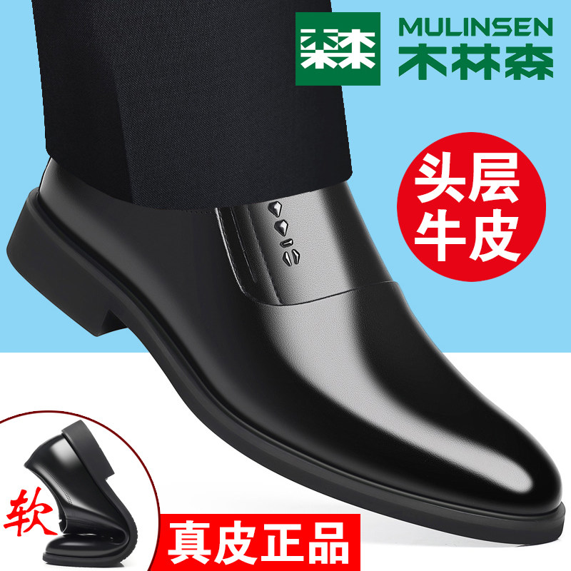 Winter new Mulinsen men's leather shoes, leather business casual shoes, fleece warmth, high-end men's shoes, genuine shoes