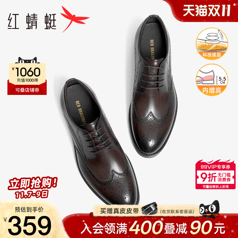 Red dragonfly black knight leather shoes men's new leather brogue men's business formal wear height increase wedding groom shoes men