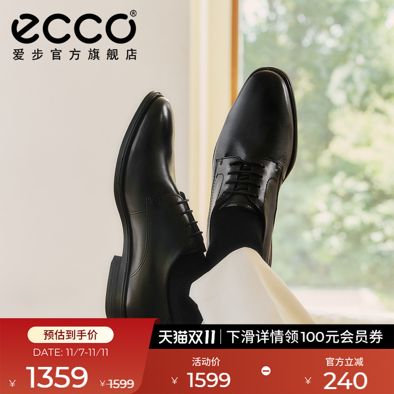 ECCO Aibu Men's Classic Derby Shoes Autumn Genuine Leather Shoes Business Formal Leather Shoes Moben 621634