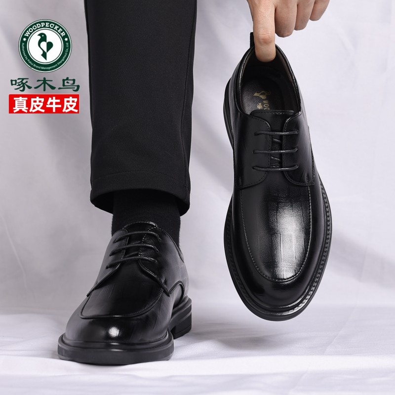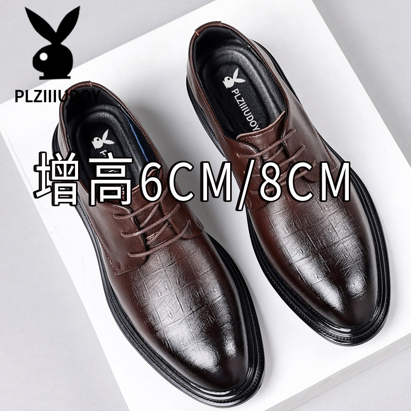 Leather shoes, men's spring new casual leather shoes, business formal work shoes, increased pointed toe wedding groom shoes