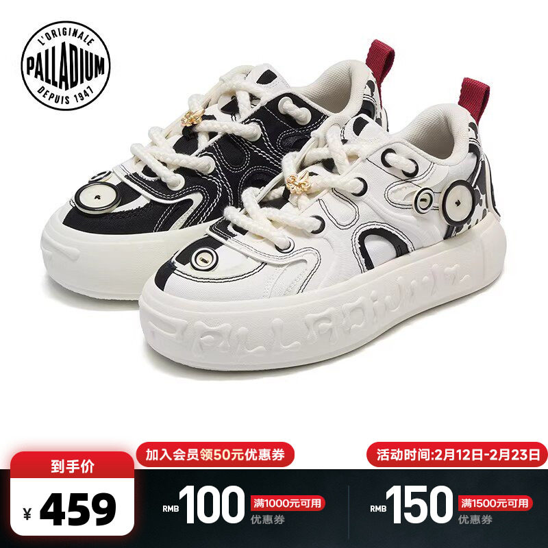 PALLADIUM Classic Versatile Mandarin Duck Black and White Board Shoes Thick-soled Heightened Button Shoes