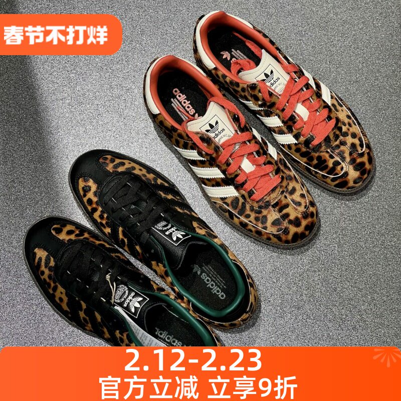 Adidas Clover SAMBA Low Top Women's Black Brown Leopard Print Athleisure German Training Shoes JI2734