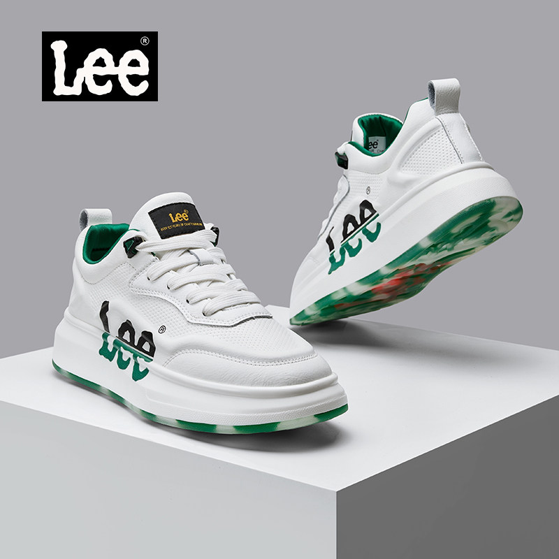 Lee Shoes Men's Platform White Shoes 2026 New Spring Genuine Leather Heightening Men's Shoes Casual Board Shoes Men's Trendy Shoes