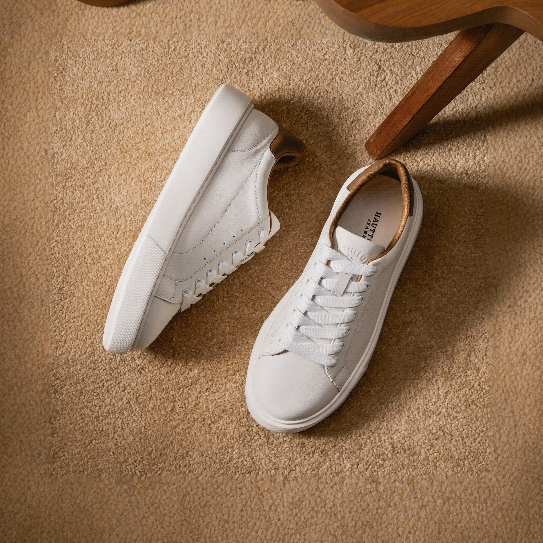 HauttonJeans thick-soled white shoes men's leather white board shoes men's casual shoes