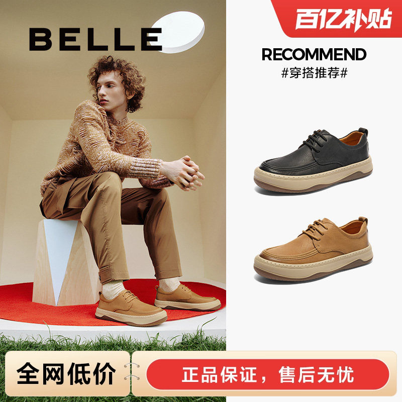 Belle Men's Nut Pie Genuine Leather Thick Sole Heightening Workwear Board Shoes Spring New Casual Leather Shoes A1611CM4
