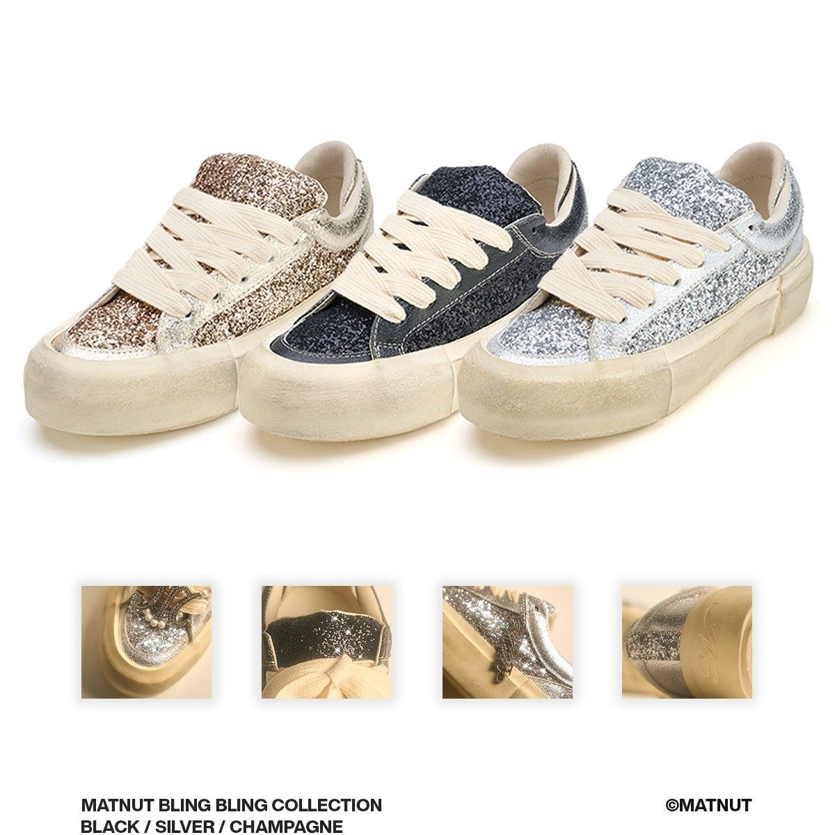 MATNUT TYPE BLING BLING GLITTER DIAMOND SEQUIN SILVER DISTRESSED DIRTY SHOES PLATFORM HEIGHTENING BOARD SHOES