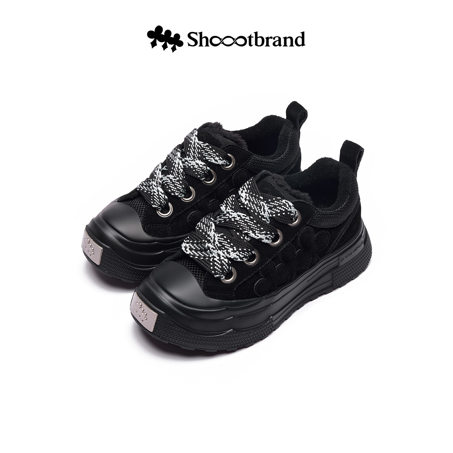 SHOOT BRAND Ensemble Series Black Plush Board Shoes Cow Suede Thick Sole Heightened Warm Canvas Shoes Winter