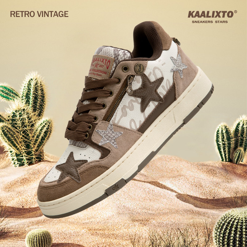 Kaalixto national trend brand brown star shoes 2025 autumn and winter Maillard niche board shoes