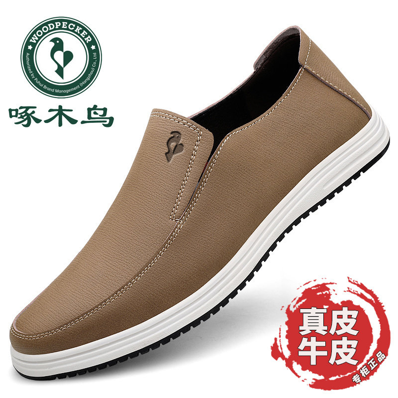 Woodpecker leather shoes, men's leather breathable, casual shoes, soft leather soft soles, versatile beanie shoes, over-the-foot loafers
