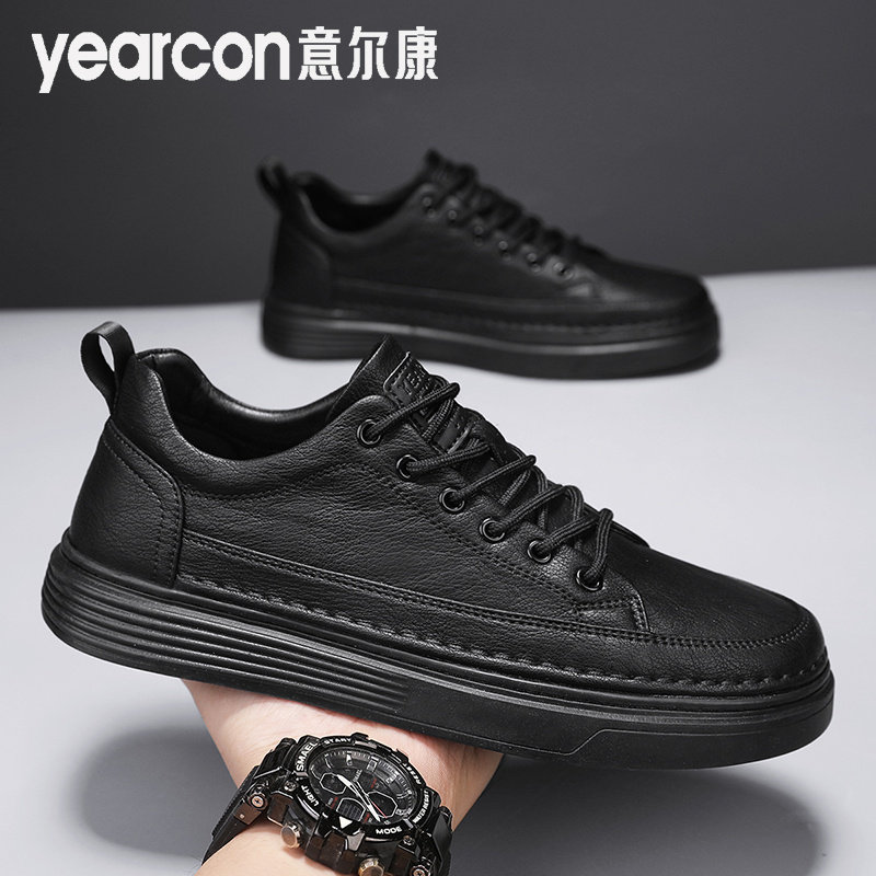 Yierkang men's shoes 2025 new spring black casual flat shoes men's leather shoes waterproof work non-slip and versatile