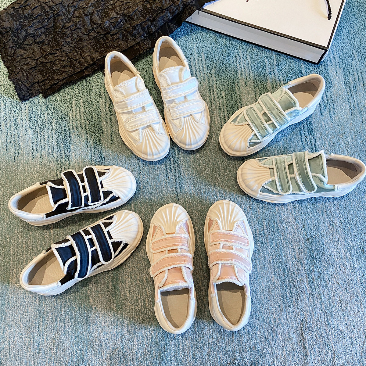 Hong Kong Velcro Satin White Shoes Women's 2026 Spring and Autumn Shell Head Casual Board Shoes Spanish Niche Canvas Shoes