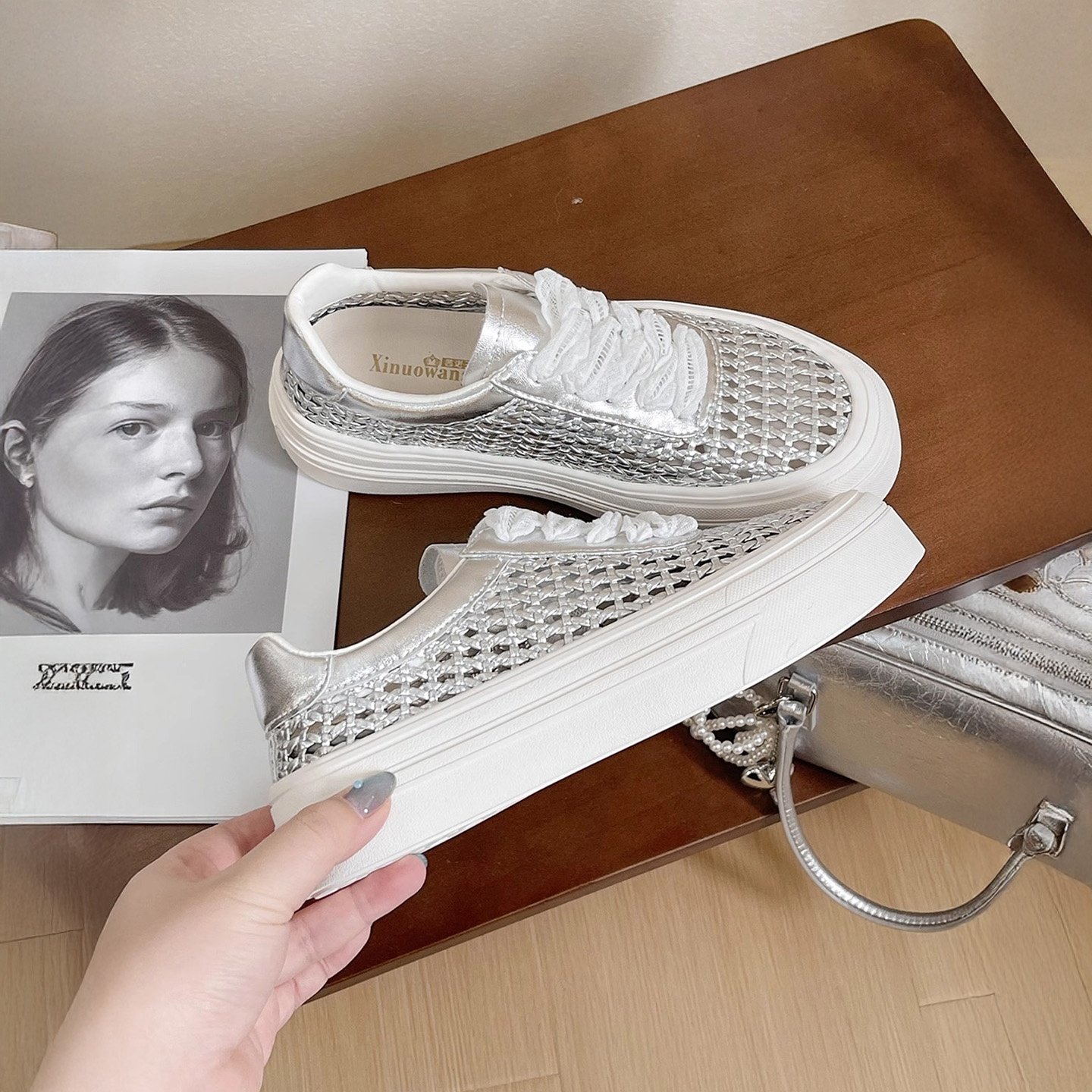 Hong Kong fishing net woven breathable thick-soled lace-up board shoes women's 2026 spring/summer new versatile sports height-increasing casual shoes