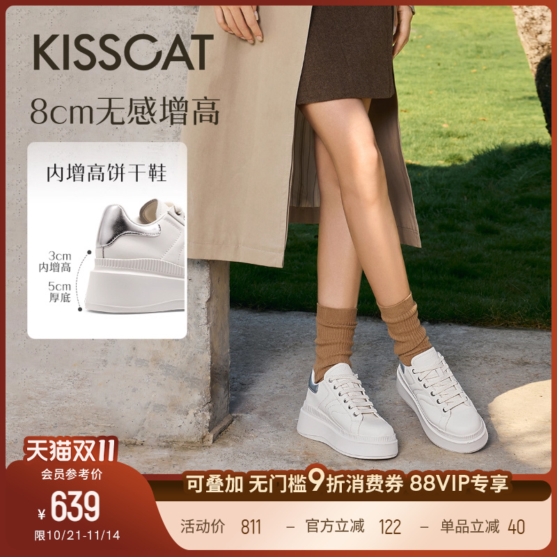 Xu I dazzled Xu Yan Lusi/Tian Xiwei the same kissing cat 8cm inner height increase casual board shoes thick-soled white shoes