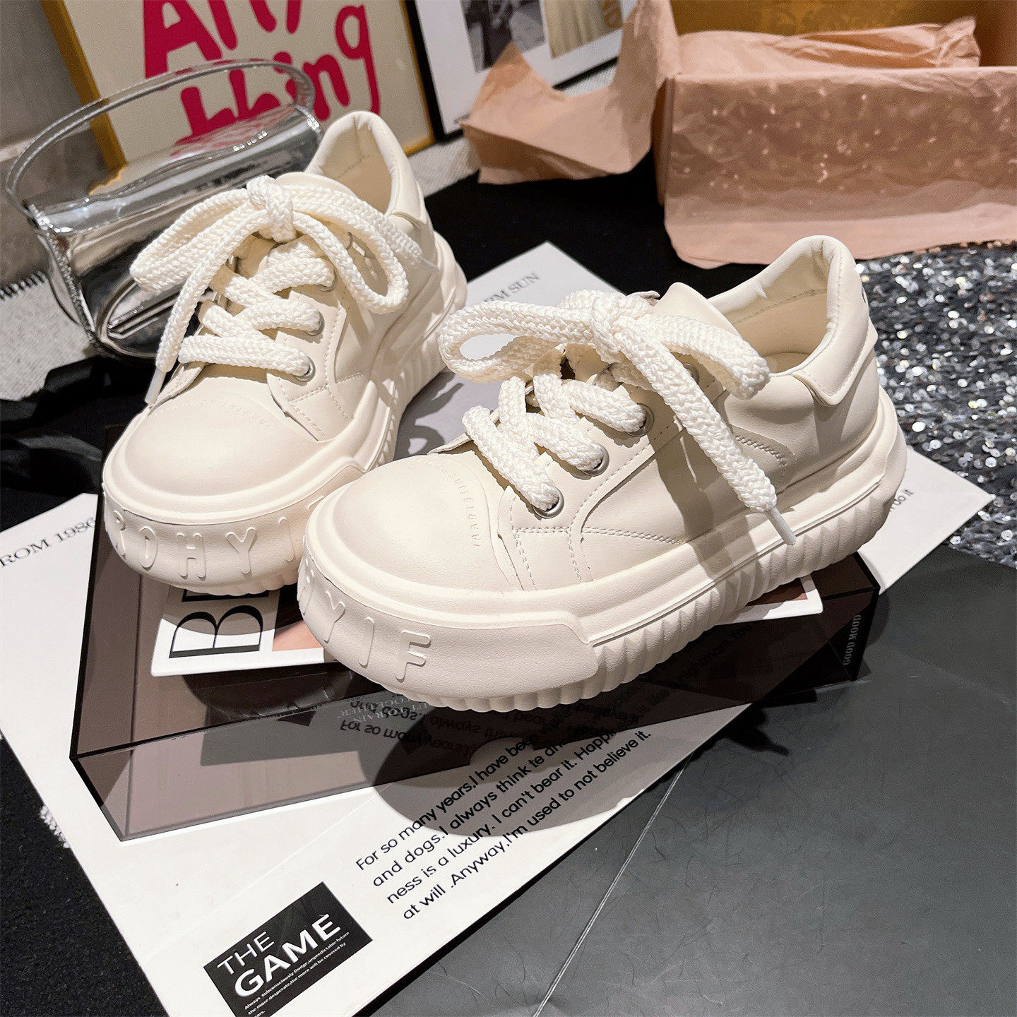 Hong Kong thick-soled white shoes women's 2026 spring and autumn new small versatile casual board shoes retro sports training shoes