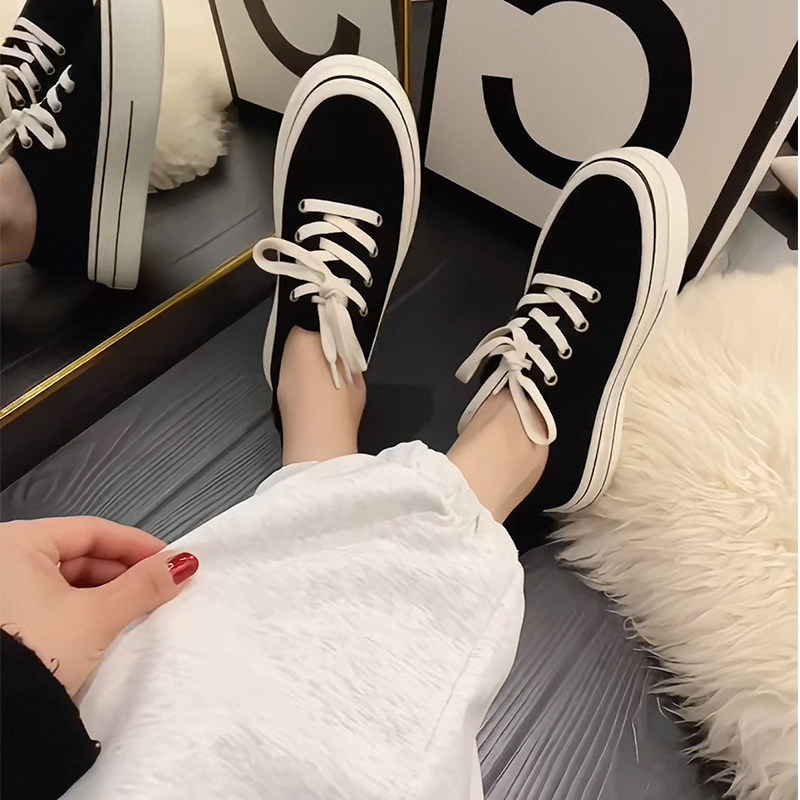 Hong Kong black classic casual board shoes women's 2026 spring and autumn new flat versatile fashion sneakers heightened board shoes