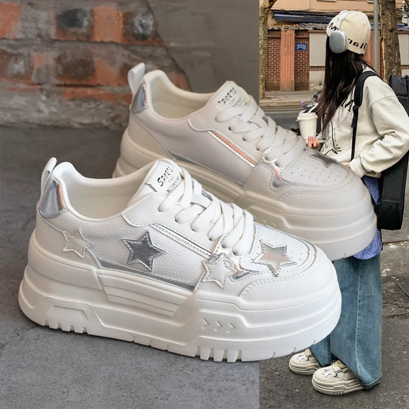 Hong Kong leather star white shoes women's lace-up platform muffin ugly cute bread shoes new spring and autumn breathable women's shoes