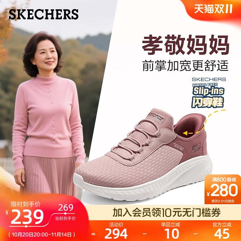 Skechers flash shoes, light pedaling shoes, women's shoes, mother's shoes, middle-aged and elderly autumn and winter wide last casual shoes