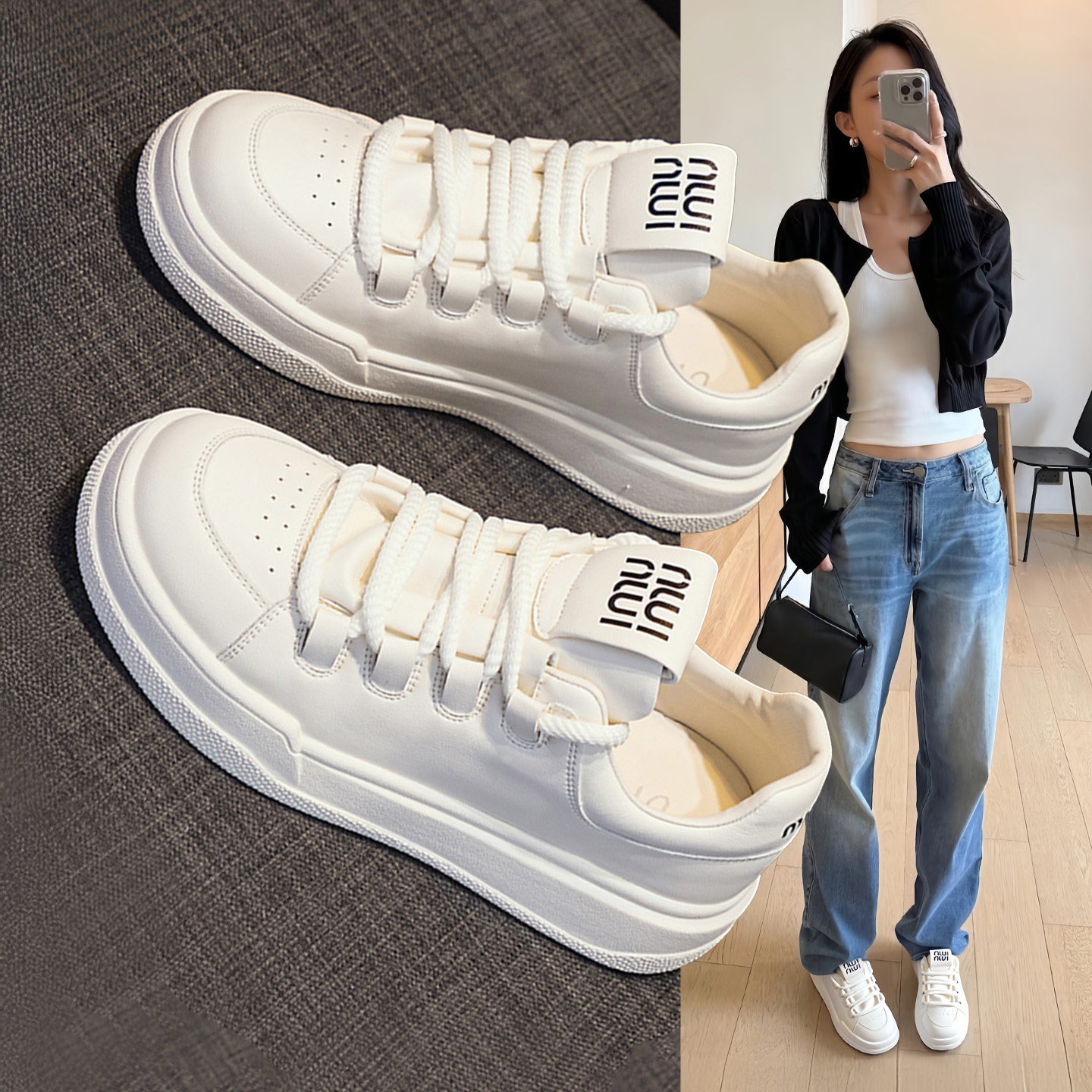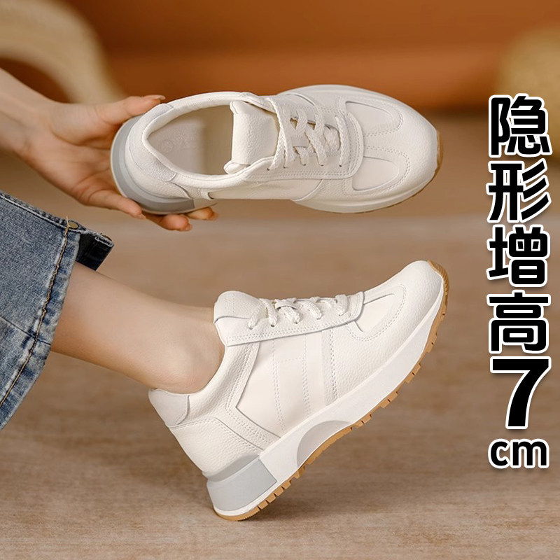 Hong Kong leather white shoes women's fashion sneakers 2026 spring and autumn new versatile platform shoes look slim and show long legs
