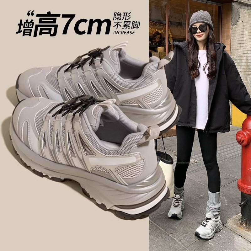 Hong Kong heightened thick-soled breathable sneakers women's spring 2026 new versatile small outdoor travel dad shoes