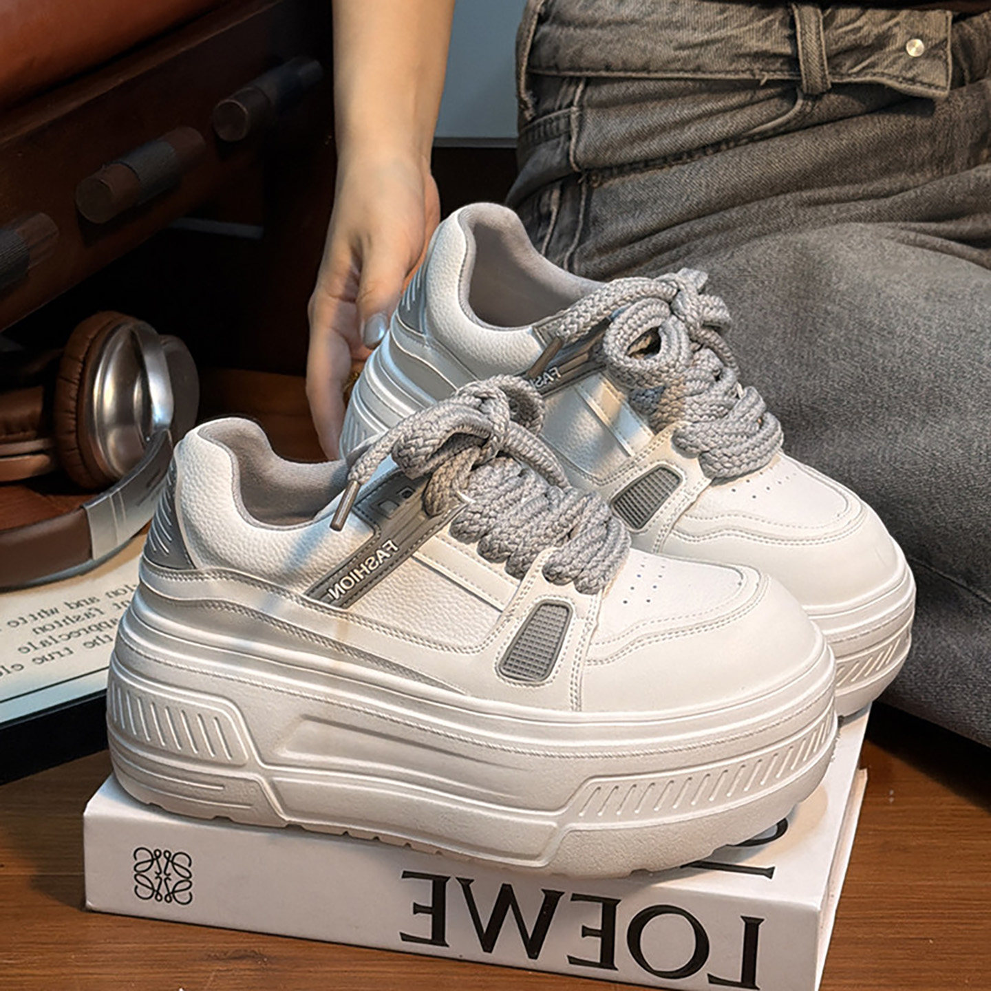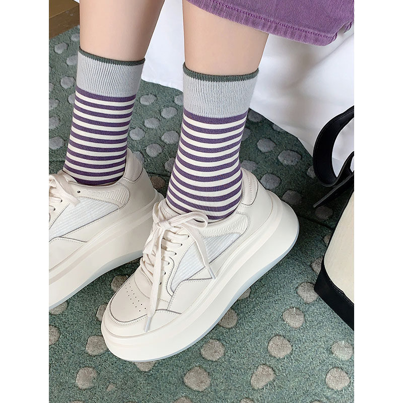MEIYANG white sesame platform shoes are super comfortable and versatile, with heightened thick soles and round toe muffins