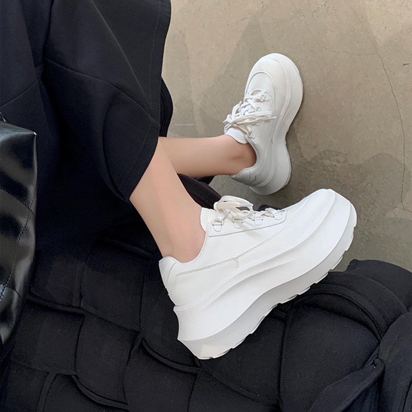 Hong Kong leather muffin thick-soled round toe white shoes women's 2025 spring/summer new small height increase casual sneakers