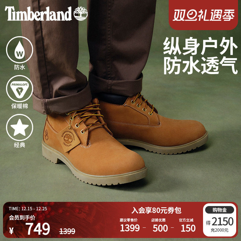 Timberland official kick men's shoes mid-top rhubarb boots winter waterproof leather warmth|50061