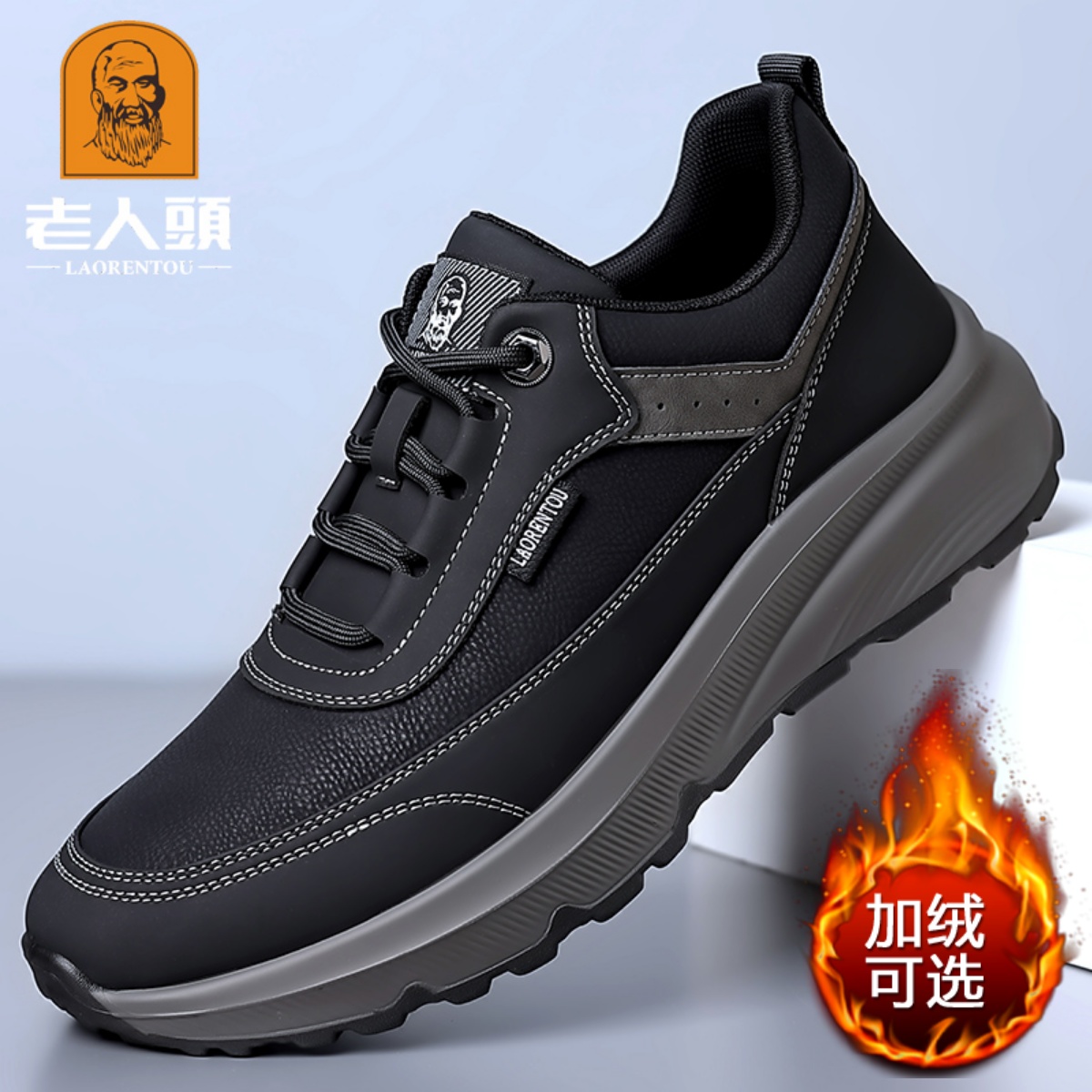 Old man head men's shoes autumn and winter men's leather fleece warm casual shoes soft-soled sneakers non-slip running shoes men