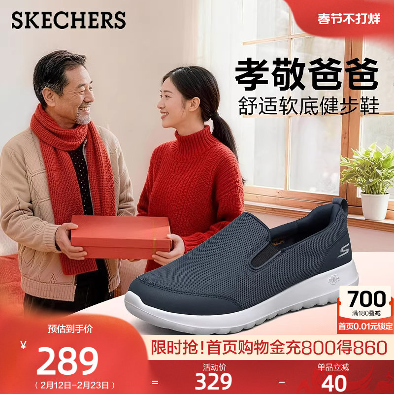 Skechers fashion men's shoes one foot middle-aged dad shoes walking shoes light and comfortable casual sneakers spring