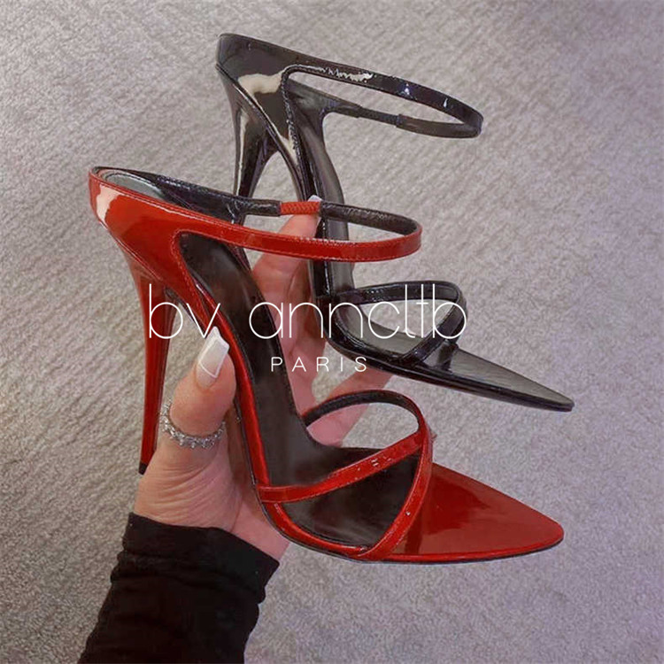 BV ANNCL TB Summer New Patent Leather Pointed Toe High Heels Feminine Beautiful String Sandals with Open Toe Stiletto Heels