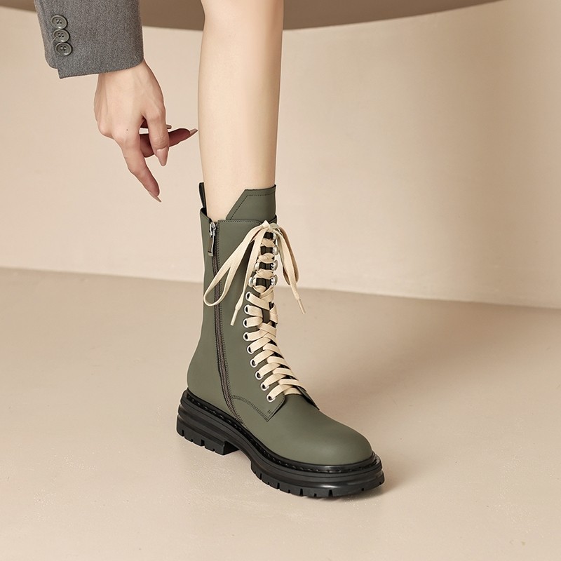 She looks good~ Corso Venezia leather side zipper lace-up Martin boots women's 2025 platform thick-heeled boots