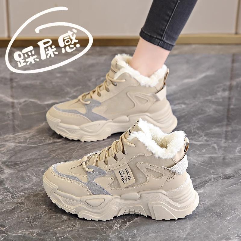 Pull-back fleece thickened high-top women's shoes 2025 new autumn and winter cotton shoes ins tide thick-soled sports shoes